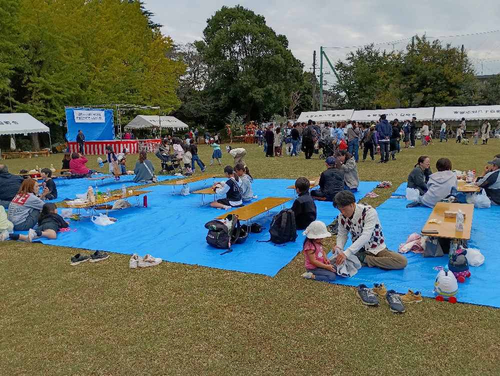 令和7年11月2日(日)、東習志野ふれあい広場において「高齢者ふれあい元気事業 東習志野8丁目ふる里祭り」が開催されました。緑の芝生の会場には、キッチンカーや屋台があり皆さん楽しんでいました。舞台では、3丁目町会のフラダンスサークルの皆さんのダンスとウクレレ演奏が披露されました。ウクレレに合わせ町会長の皆さんがカイマナヒラを歌っていました。
