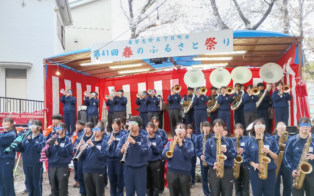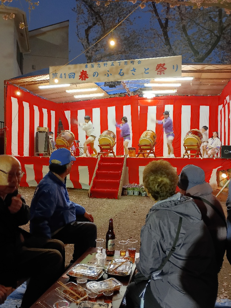 令和8年4月4日(土)桜🌸が満開のマラソン道路にぃて、第41回東習志野5丁目町会春のふる里祭りが開催されました。今日は、朝から雨模様の天気でしたが、皆の願いが届いたのかお祭り開始の16時には、雨がやみ無事スタートしました。